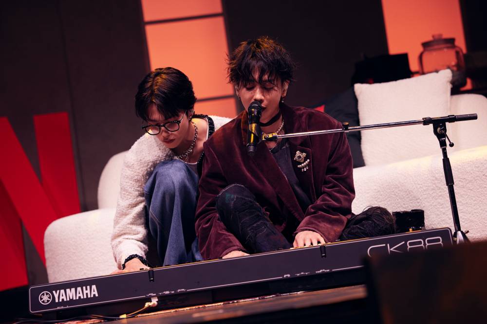 4人は劇中で「TENBLANK」というロックバンドを結成するのだが、彼らの楽曲「旋律と結晶」を生披露した。キャスト陣によるまさかの“生演奏”という豪華すぎるサプライズに、涙を流す観客の姿も見受けられた。