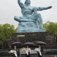吉田は「戦後80年の節目の年に平和祈念像に献花する機会をいただき、光栄に思います。原爆で亡くなられた多くの方を思い浮かべました。長崎が最後の被爆地であってほしいと強く願いたい」と語った。