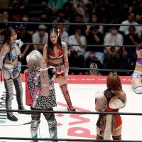 東京女子プロレス「東京プリンセスカップ」が23日、東京・後楽園ホールで行われ、セミファイナルでは、中島翔子&ハイパーミサヲ&HIMAWARI&鳥喰かや組と、アジャコング&上福ゆき&上原わかな&芦田美歩組が激突。ハイパーミサヲからホールを奪った「Ober Eats」の上原わかなは、プリンセスタッグ王者組「享楽共鳴」に王座挑戦を表明。ハイパーミサヲも「絶対負けない!」と受け入れた。試合後、ハイパーミサヲは「返り討ちにしてやる!」と息を巻き、上福ゆきは「(上原に)かっこいい先輩の背中を見せないと。覚悟を決めてやる」と意気込んだ。