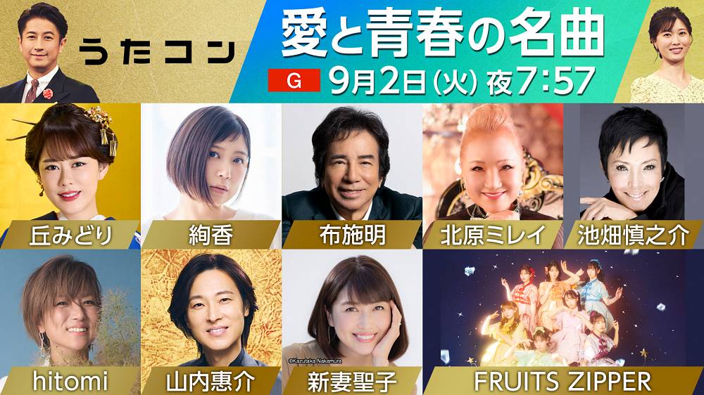 出演:絢香、池畑慎之介、丘みどり、北原ミレイ、新妻聖子、hitomi、布施明、FRUITS ZIPPER、山内惠介