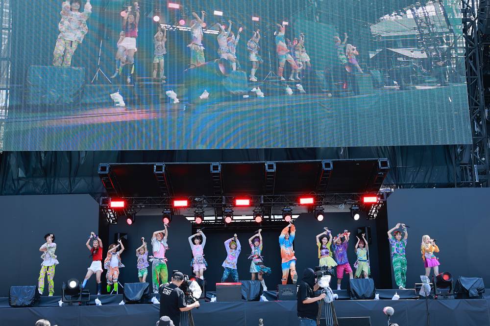 小中学生の14名で構成されたヴォーカル&ダンスカンパニー・PGがオープニングアクトで登場。昨年「夏休みの自由研究をバズらせたい小中学生集団」としてTikTokでバズった彼らは、今年はPGとしてa-nation初出演。元気いっぱいのパフォーマンスでフレッシュさをアピールし、ボーカルでは伸びやかなハイトーンをスタジアムに響かせた。最後に披露した新曲「BANABANA」は力強い応援歌。大きな会場にも恐れることなく、笑顔を見せながら堂々としたパフォーマンスを見せたPGが「a-nation 2025」の開幕前を盛り上げた。