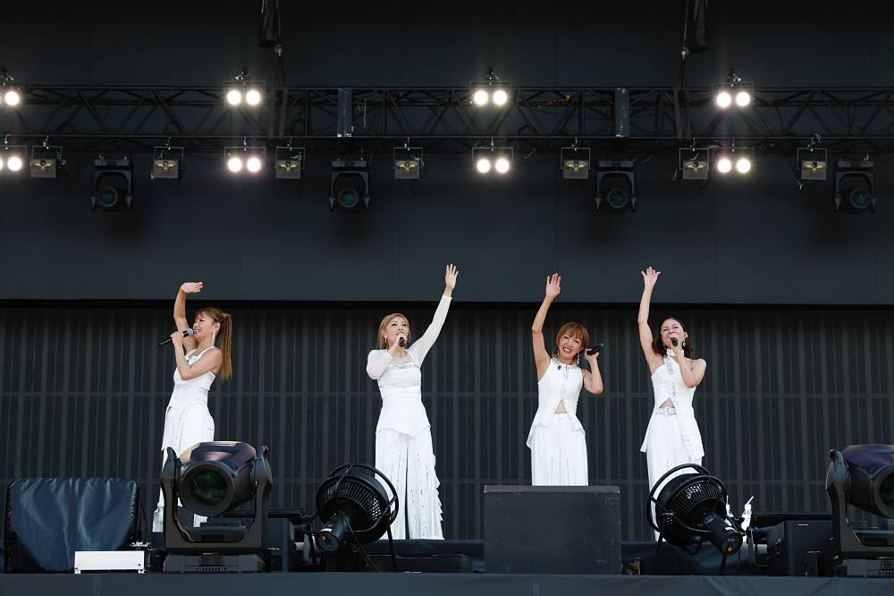 1995年にavexからデビューしたMAXは今年でデビュー30周年。昨年リリースした「BOOM BOOM BOMB-BA-YEA」でライブをスタートすると、頭上で両手を大きく叩いて会場を盛り上げた。「今日だけのスペシャルメドレーを用意してきました」と言って始まったサマースペシャルメドレーでは、MAXの大ヒット曲「GET MY LOVE!」や「TORA TORA TORA」を含めた4曲を披露。“MAXといえばこの曲!”という夏にピッタリのヒットメドレーで、真夏の味の素スタジアムの熱気は早くも最高潮に。自分たちの等身大の気持ちを歌ったという「Lovin' me」では肩の力が抜けた大人の魅力を存分に発揮。最近ではソロで活動することも多い彼女たちだが、4人のパフォーマンス力が健在であることを見せつけた。