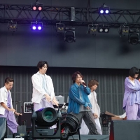 すっかり日が暮れた味の素スタジアムに登場した平井 大。「祈り花」ではウクレレを弾きながら優しくも穏やかな声を届けたかと思えば、「MIRROR MIRROR」から「Under the sea」のメドレーではまるでミュージカルのようなにぎやかな楽曲で、ステージを端から端まで歩きながら、客席に向き合った。オーディエンスのシンガロングで始まった「Slow & Easy」では、曲ののんびりしたテンポに合わせて入場者に配られた光るうちわの青い光が右に左に大きく揺れて、癒やしのひとときに。「まだちょっと時間があるみたいだから」と言って、客席に「最近、結婚したという人は?」と問いかけると、ちょうど去年結婚したという夫婦を発見。その2人に向けて歌ったのは、平井 大の代表的なラブソング「Stand by me, Stand by you.」。最後には2人に「末永くお幸せに」と祝福を贈り、ライブを締めくくった。
