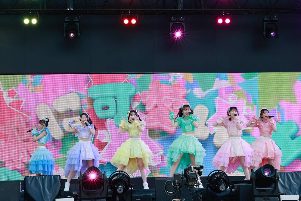 超ときめき□宣伝部は、メンバーカラーのパステル調ドレスで、ときめきいっぱいのステージを展開。くるくる変わる豊かな表情で最新曲「超最強」を届け、オーディエンスと「かわいい!」のコール&レスポンスを繰り広げていく。「ここからは私たちと一緒にときめきトレイン作りませんか?」と始まった「初恋サイクリング」では、6人で列になり、キュートな動きと笑顔で彼女らの十八番である“好き”の気持ちを直球アピール。「a-nation」初出演の喜びを語って、坂井仁香が「今日は、この会場のみなさんに、たくさんときめいてもらえるように頑張ります!」と宣言してからは、「世界でいちばんアイドル」でファンへの感謝を歌い、「トゥモロー最強説!!」では花道の先まで出て客席に大きく手を振る。最後は代表曲「最上級にかわいいの!」で、オーディエンスのハートをロックオンしてみせた。
