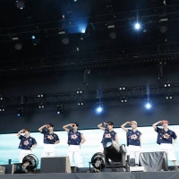 NCT WISHは、おそろいのユニフォームスタイルで堂々リフトアップ。透き通るような歌声と流れるようなダンスパフォーマンスで「Melt Inside My Pocket」を韓国語、「Songbird (Japanese Ver.)」を日本語で贈り、グローバルな活躍の成果を示していく。シャワーを浴びたように汗だくになりながら「2年連続でこの『a-nation』の舞台に立つことができました!」と喜び、「poppop (Japanese Ver.)」ではタイトルの通りポップに躍動。「Sail Away (Japanese Ver.)」では、爽快なトラック&パフォーマンスで夏の海へと涼やかな航海に乗り出していく。さらに「この暑さに負けない熱いパフォーマンスをお見せします」と、9月1日に発売するミニアルバム『COLOR』から先行配信曲「Surf」を日本初披露。青空を映したLEDを背に、オーディエンスの熱気という波に乗って、夏色満開のステージを締めくくった。