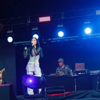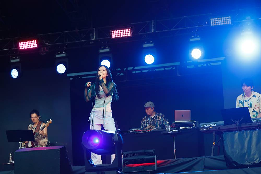 フェスも後半戦に差しかかったところでシューティングアクトとして登場したのが、昨年デビューした女性シンガーのHIKKA。デビュー曲の「Drive」で軽快なトラックに乗せ、透明感のある美声を聞かせると、続いて「普段なかなか弱音を吐かない親友への思いから生まれた曲」と語って「あなたのそばに」を歌唱。誠実な想いを真っすぐに歌い上げるバラードで拍手を呼んだ。最新曲「Taboo」では深みのあるボーカルと笑顔でオーディエンスにアピール。初々しさの中にもアーティストとしての感性をキラリと光らせた。