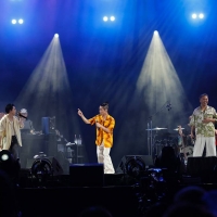 陽が落ちて暗くなった空の下、「a-nation」初出演となる久保田利伸のステージは、まずは先に登場したバンドメンバーとコーラス隊が音と声を鳴らしてスタート。そこに想いのままにフェイクを入れながら入場してきた久保田は、サビから「LA・LA・LA LOVE SONG」を歌い始めて、一気にソウルフルな空気を吹き込んでいく。客席で左右に波打つ電飾うちわとシンクロするように大きく手を振り、さらに「Boogie Ride ~Bring me up!」では心地よくうねるリズムでオーディエンスを魅了。MCでは初めての「a-nation」出演であることに触れ、「せっかくなんで今日は心を込めて、この夏、一番の歌を歌って帰りたいと思います。みなさんも、この夏一番の思い出を作って帰ってください」と宣言する。そして、バンドやコーラス隊と軽快にグルーヴする「諸行は無常」に続いて、名バラード「Missing」では魂のこもった歌唱に、青い光を灯した客席のうちわが優しく揺れた。さらに「せっかくなんで……Da-iCEいる?」と豪華なコラボステージが実現。「夢が叶うぞ!」と叫んだ花村想太に、大野雄大を含めた3人で「LOVE RAIN~恋の雨~」を歌い継ぎ、サビでは腕を振りながらユニゾンして、多幸感いっぱいのステージを作り上げた。