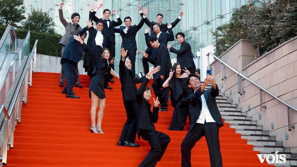 フォトセッション後には、階段で妻夫木がスマホを持って自撮り。登壇者が思い思いにポーズを決めるなど仲の良さも垣間見せた。