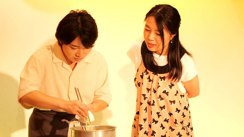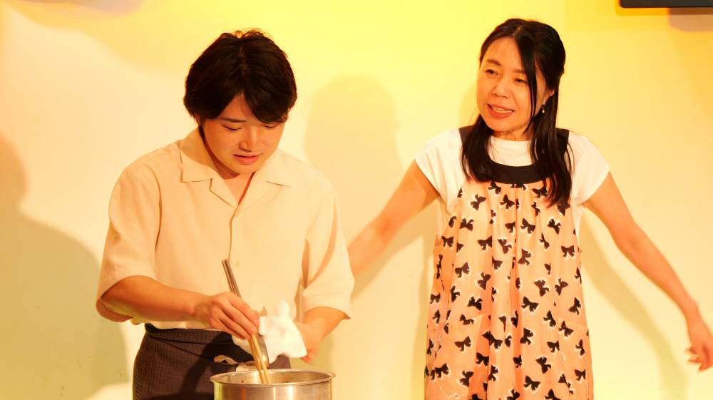 調理に集中する小山雄大とそれを見守る湊尚子さん