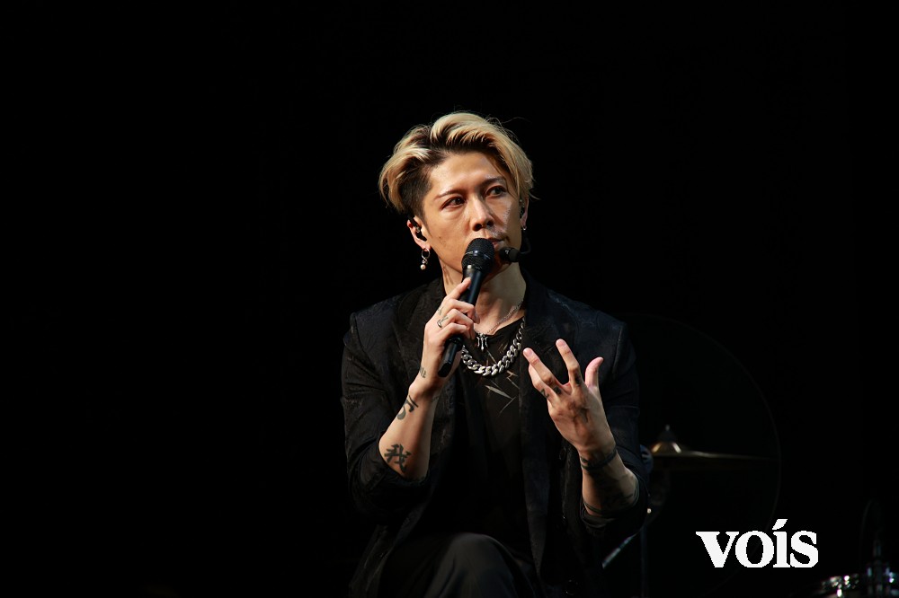 世界を舞台に活躍するMIYAVIは、開口一番、日本語、英語、そして中国語での挨拶を披露し、国際色豊かな来場者を歓迎した。近況について、最近は「日中間」「東アジア近辺」を行き来していると明かした。