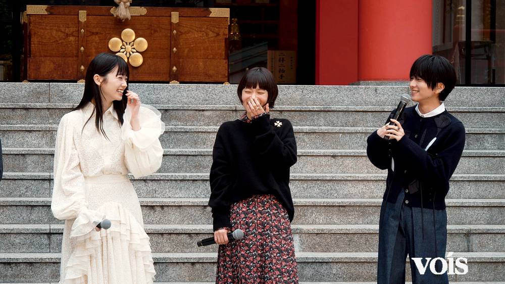 杉咲花、南琴奈、板垣李光人、松居大悟監督が15日、都内で行われた映画『ミーツ・ザ・ワールド』大ヒット祈願イベントに出席した。物語の舞台となった東京・新宿。区内にある成子天神社でヒットを願い祈祷した。