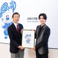 『淡路うず助』は渦潮のような“自然の力強さ”と穏やかな潮のように“優しい人懐っこさ”を兼ね備えている。トレードマークは渦巻模様のパーカーと、くるくる回る特徴的なヘアスタイルで、体の各所に“渦”モチーフを入れている。また、両手の渦模様には特別な力が宿っており、手を合わせると“元気”や“勇気”を分けてもらうことができる。「多くの方に愛され、日本と世界を、淡路島と世界を繋ぐような架け橋に…うず助がそんな存在になってくれたら嬉しい」と松島がこのキャラクターに込めた想いを関係者に伝えると、現地の方を中心に大きくうなずく姿が。