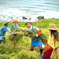 常盤貴子&仲間由紀恵&ハライチ澤部、能登3人旅 千枚田で稲刈りに挑戦