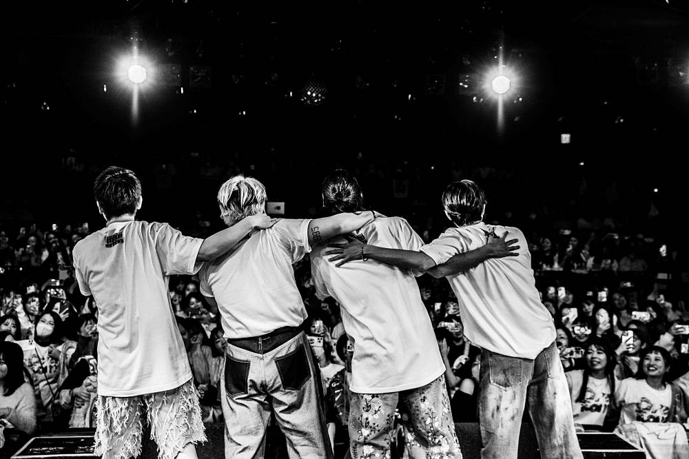 メンバーがステージを降りてからも、客席のファンから「僕らの街」 の合唱とアンコールが鳴り止まない中、再び4人がステージに登場。ファンの期待に応えるように「共感性自尊」「Encore」を披露したのち、集合写真を撮影しているとファンからの寄せ書き横断幕がプレゼントされるサプライズも。そして彼らの作品の中でも大切な1曲でもある「M7」を届け、本当に最後の1曲として『同じ目線で届けたい』という言葉をそのまま体現するように客席の中へと歩み出て「僕らの街」を歌い切った。