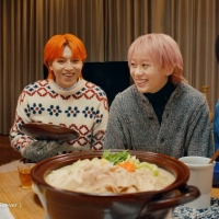 用意された鍋の蓋を開けると、湯気とともにおいしそうな「〆鍋 ごま豆乳鍋」が現れる。一口食べて「うま~!」と幸せそうな表情を浮かべるタクヤ。メンバーが集まるリビングにはライブグッズのタオルが置かれていたり、カイさんの直筆でメンバーごとの役割が書かれた家事分担表が置かれていたりなど、仲良く共同生活をしている世界観が楽しめる要素が盛りだくさんとなっている。