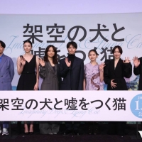 高杉真宙、伊藤万理華、深川麻衣、安藤裕子、向里祐香、安田顕、森ガキ侑大監督が10日、都内で行われた『架空の犬と嘘をつく猫』(2026年1月9日)舞台挨拶付き完成披露上映会に登壇した。