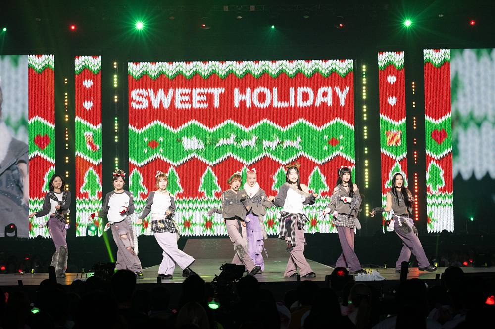 アンコールは、ME:Iの原点ともいえる「LEAP HIGH! ~明日へ、めいっぱい~(ME:I Ver.)」で幕開け。客席に散らばったメンバーは、サインボールを投げたり手を振ったり、YOU:MEと至近距離でコミュニケーションを楽しむ。そしてこの季節にぴったりなウィンターソング「Sweetie」をYOU:MEのためにパフォーマンス。ペンライトが赤と緑に光る中、メンバーはかわいらしくサンタやトナカイのカチューシャを被り、会場をクリスマスムードで包んだ。
