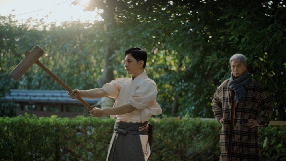 オフシーンでは杵を振る吉沢の姿を優しい笑顔で見守っていた尾美だが、本番になると一瞬で真剣な表情に変わり「もっと気合いを入れろ!」と吉沢を鼓舞。「あと100本!」という尾美のアドリブに吉沢が思わず笑ってしまうお茶目なシーンもあった。