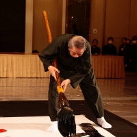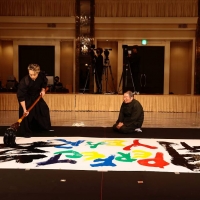 会見後半には吉川もステージに登壇。今回の作品について「だいたい書道というとすぐ墨の黒となりますが、多様性の時代の中でこれではダメなんじゃないか、多彩な形で表現していくことが絶対条件だろうと思ってTAKAHIROさんに提言しましてこの色使いをさせて頂きました。」とこだわりを語った。それを受けてKAEDEは「時代に合わせて多彩に色を交えていくという話を聞いて、日本の素晴らしさを残しながら新しく表現を作っていくというところがパフォーマンスにも通ずるところがあるなと思って。つらくなったり疲れたりしたら今年はこの書を見て今日の気持ちを思い出して、心を引き締めてくれる作品になったなと思います。」とコメントした。