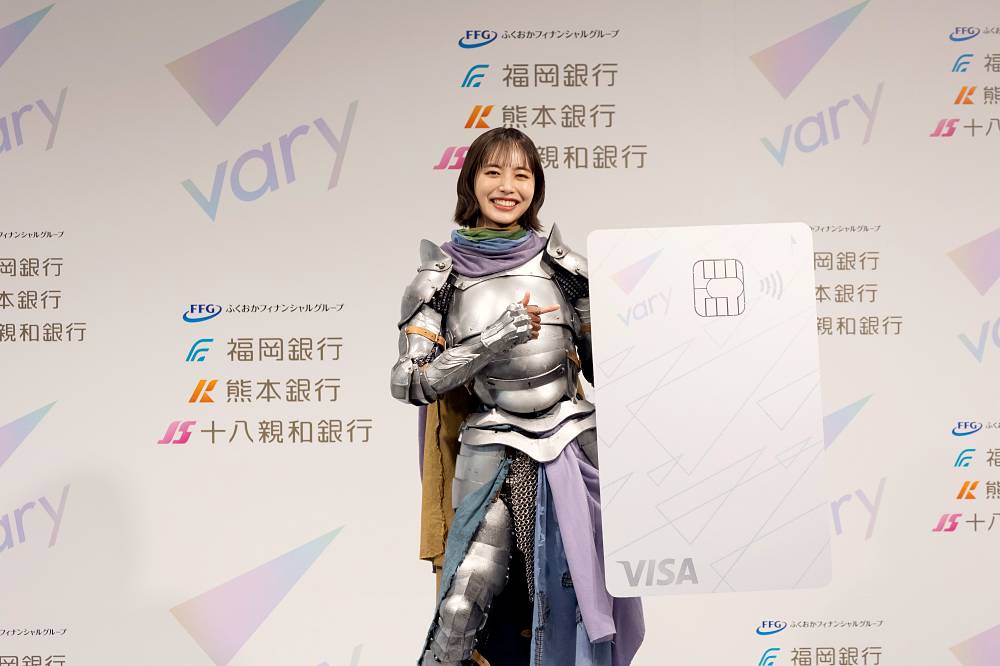井桁弘恵がこのほど、地元・福岡市内で行われた、FFG 新サービス「vary(バリー)」発表会および新CM発表会に出席。CM撮影でも着用した甲冑姿で地元に凱旋した。