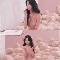 透明感あふれるピンクのワンピースで登場したツウィ。雲のようにふ わふわとしたベッドに身を預け、気持ちよさそうに眠るシーンから撮影がスタート。まどろむようなやわらかな表情やそっと動く手元の仕草に、スタジオはリラックスしたムードに包まれ、撮影は順調に進んだ。今回は、眠るシーンやささやくような仕草のシーンなど、感情の機微を 繊細に表現するシーンも多くあったが、そのようなシーンでは、自分 の映像をモニターで確認した瞬間、恥ずかしさから思わず声を上げて笑ってしまう場面も。撮影中の真剣な表情とは一転、ふっと明るくほどける笑顔がとても印象的だった。また、本来そこにはいないBunnyとCatのキャラクターに視線を合わせて芝居をする難易度の高いシーンでは、息づかいから目線の角度まで細かく調整し、まるで本当に隣にいるかのような自然な距離感を表現。ルージュを塗られる瞬間のわずかな反応や、目覚めるシーンのニュアンスにもこだわり、映像に“魔法がかかったような”柔らかい世界観をつくり上げていた。