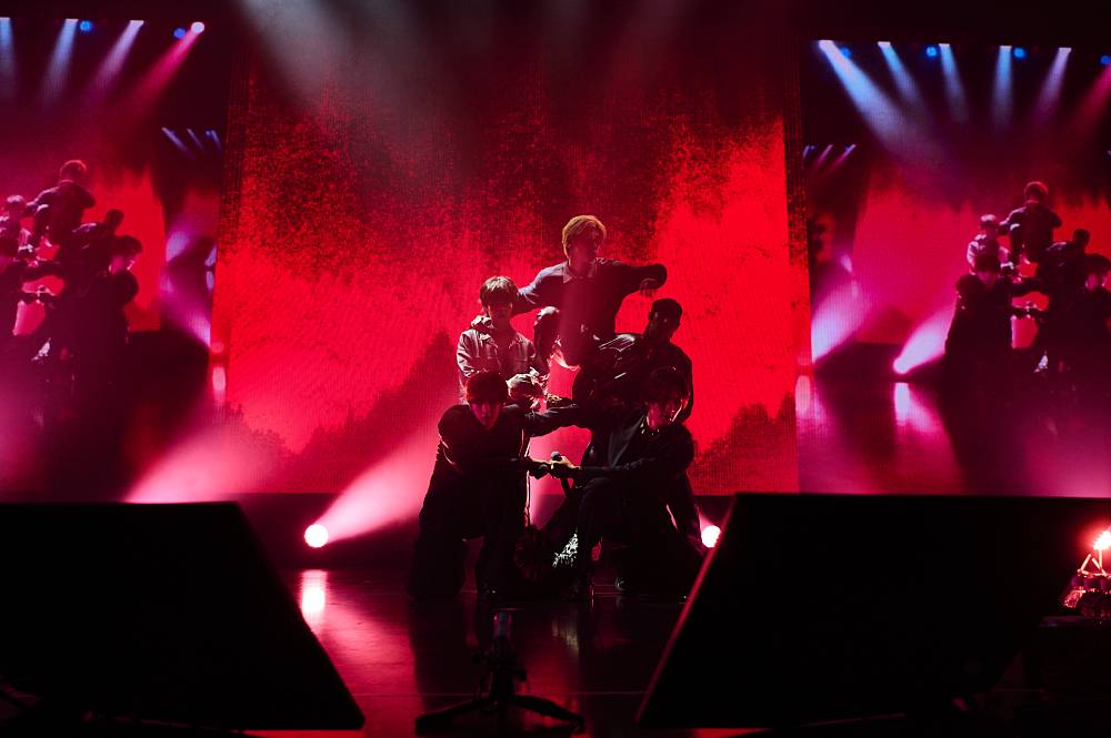 中盤、空気は一変し、YOON YE CHAN(ユン・イェチャン)の鋭いDJプレイからDJタイムへ。続いてNAMSEONG MO(ナム・ソンモ)、PARK SEOK JOON(パク・ソクジュン)、CHO SEONG IL(チョ・ソンイル)、HWANG SEONG BIN(ファン・ソンビン)、KIM DO GYUN(キム・ドギュン)が繰り出す圧倒的なマイクリレーから、イェチャンが加勢し6人の魂がぶつかり合うラップが会場をさらなる熱狂の渦へと突き動かした。