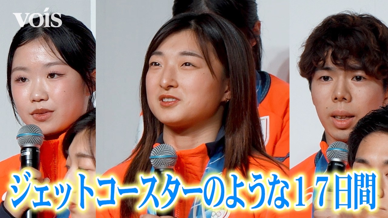 スポーツ フィギュア坂本花織、ラスト五輪に万感 中井亜美は次大会に意欲 佐藤駿も感謝 第25回オリンピック冬季競技大会 TEAM JAPAN 帰国時記者会見 編集部 26年02月25日08時02分 『第25回オリンピック冬季競技大会』(2026/ミラノ・コルティナ)TEAM JAPAN 帰国時記者会見が24日、都内で行われた。フィギュアスケートで女子 シングル銀の坂本花織選手、女子シングル銅の中井亜美選手、男子シングル銅の佐藤駿選手がメダルを提げ、大会を振り返った。 Photos 記事タグ フィギュアスケートミラノ冬季五輪帰国会見中井亜美佐藤駿坂本花織 > スポーツ> フィギュア坂本花織、ラスト五輪に万感 中井亜美は次大会に意欲 佐藤駿も感謝 コメントを書く(ユーザー登録不要) 前後の記事 スノボー・村瀬心椛&木村葵来&深田茉莉らメダリストが帰国会見、感謝の言葉を何度も “りくりゅう”木原龍一「璃来ちゃんと最後まで走り抜くことが出来ました」帰国会見で感謝 関連する記事 “りくりゅう”木原龍一「璃来ちゃんと最後まで走り抜くことが出来ました」帰国会見で感謝 2月25日 08時11分 フィギュア鍵山優真、質問忘れ三浦璃来からツッコミ 大量のフラッシュに目しょぼしょぼ? 2月25日 07時58分 “りくりゅう”三浦璃来&木原龍一、帰国会見でも仲睦まじさ全開 金メダル引っ提げ笑顔で 2月25日 07時57分 高市早苗首相、日本代表選手団に激励のビデオメッセージ「存分に発揮してください」 1月19日 15時14分 日本代表選手団が声援受ける、フィギュア坂本花織が旗手代行で決意表明「勇気を届けたい」 1月19日 14時57分 フィギュアスケート・鍵山優真 4回転フリップ投入へ「攻めきったパフォーマンスを」 1月19日 10時12分 フィギュア坂本花織、ミラノ五輪・結団式で旗手代行 決意表明「笑顔を届けたい」 1月19日 09時36分 織田信成、2度目の引退後初のアイスショー「正直寂しさはある」 2月21日 23時09分 宇野昌磨&本田真凜、リンクで揃ってファンサ 演技ではそれぞれ華麗に 2月21日 21時39分
