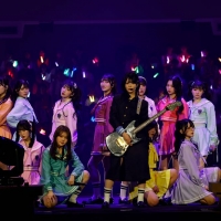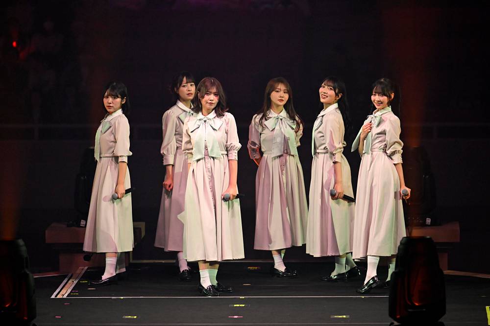 後半ブロックでは生バンドが登場。エレキギターを手にした江角にスポットライトが当たり、彼女がパワーコードを力強くかき鳴らすと盛大な歓声が上がる。その編成のまま『無謀人』が披露され、『超孤独ライオン』では江角のエッジィなギターソロが炸裂した。その後も≒JOYは人気曲を生バンドの演奏をバックに披露していく。天野香乃愛がセンターを務めた4thシングルの表題曲『電話番号教えて!』では、メンバーがキュートな笑顔を振りまいた。