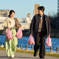 この日撮影したのは、出会って間もない二人が商店街で偶然、遭遇するシーン。青果店で買い物する桃子を見かけるミンソク。会話を交わしていると、底が抜けてしまった買い物袋から果物や野菜が転がり落ちて…という自然と笑みがこぼれる微笑ましい場面が展開する。