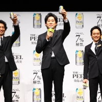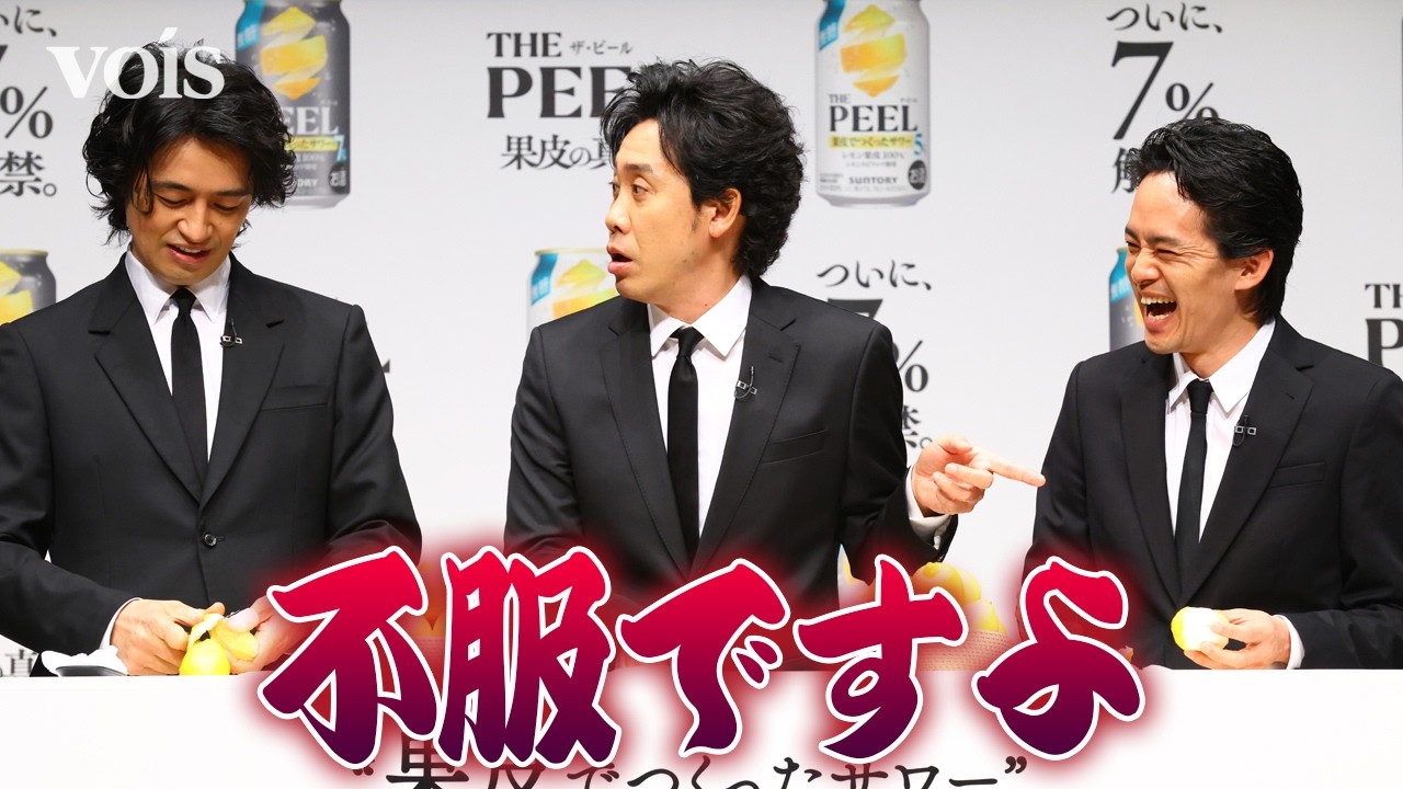 大泉洋、斎藤工、池松壮亮が16日、都内で行われた『”果皮でつくったサワー“「THE PEEL」商品説明会&新TV-CM 発表会』に出席した。