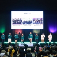 続いて、ステージには出演者が次々と登壇し、ハロプロメンバーが温室効果ガスの排出量と吸収量を均衡させる「カーボンニュートラル」の日常的な取り組みなどを伝えた。ロージークロニクルのリーダー・橋田歩果は「お家の横の花壇で薔薇の花を植えています」と伝え、OCHA NORMAのリーダー・斉藤円香は「デカボスコア(二酸化炭素の削減率を数値化した指標)100%オフをめざして、お弁当を毎日完食しています」と明かした。
