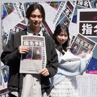 沢村玲&梶原叶渚、原宿に降臨 ドラマ「パンチドランク・ウーマン」“号外新聞”を配布