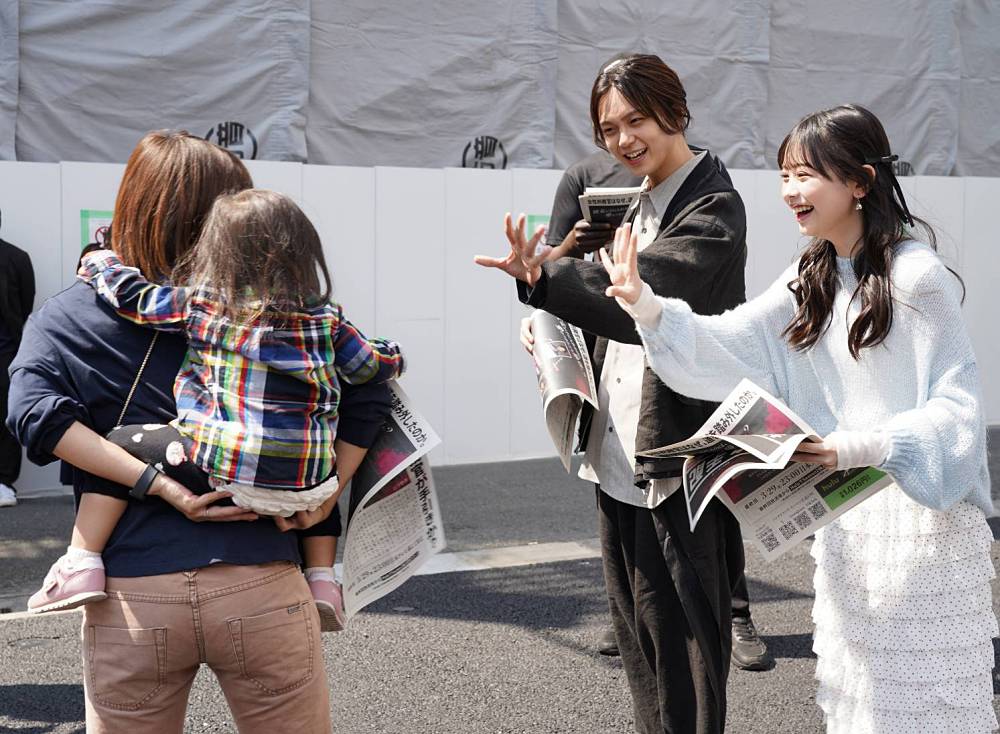 号外を手にした人からは「お母さんとおばあちゃんが好きなドラマ!」「これ、超面白い」といったドラマの感想などが聞かれる場面も。恥ずかしがって号外をもらいに行くのを躊躇っている子どもの姿もちらほら見られたが、お父さんやお母さんに促されて照れながらも無事にゲットしてもらえた。小さいお子さんを見かけると二人の表情は一気に和らぎ、自然な笑顔に。号外を手渡した後には手を振ってさよならをしていた。号外配布終了後に感想を尋ねると小さいお子さんがもらってくれたのが印象に残っているようで「かわいかったですね。小さい子がお母さんに連れられて『もらってきな!』みたいな感じで言っていて」と声を揃えてニコニコの二人。「幅広い層の方が観てくれているんだなと思いました。直接感想も聞くことができたりしてうれしかったです」と沢村。