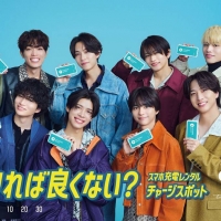 新CMでは、外出先での充電切れや充電器の忘れ物といった、日常生活で多くの人が直面する「充電の悩み」にフォーカスしている。青を基調とした街並みのセットを歩くメンバーたちが、充電に困るシチュエーションを軽快な掛け合いで描写。菊池風磨の「それ、借りれば良くない?」という一言を合図に、巨大なChargeSPOTの上へメンバーが集結するラストシーンが、サービスの利便性と手軽さを象徴的に表現している。