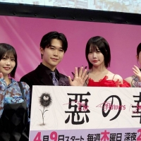 鈴木福、あの、井頭愛海、中西アルノ(乃木坂46)が2日、都内で行われたドラマ「惡の華」(テレビ東京、毎週木曜深夜24時00分~)記者会見に出席した。