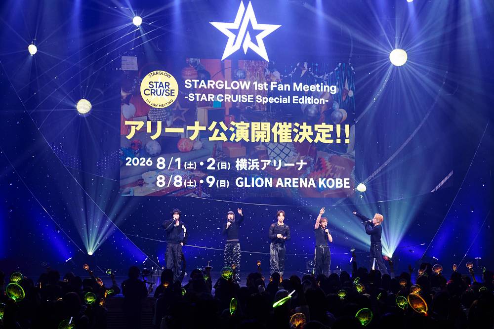 また、終盤のMCでは追加公演として、横浜・神戸でのアリーナ公演開催をサプライズ発表。『STARGLOW 1st Fan Meeting -STAR CRUISE Special Edition-』と題された本公演は、8月1日・2日に横浜アリーナ、8月8日・9日にGLION ARENA KOBEにて開催される。デビューから約6ヶ月という異例の速さでアリーナの舞台に立つことが決まった5人に対し、会場からは割れんばかりの歓喜と祝福の声があがった。4月10日20時00分より、STARGLOW Official Fan Club「STARS」会員先行およびB-Town<Architect>会員先行受付が開始となっている。