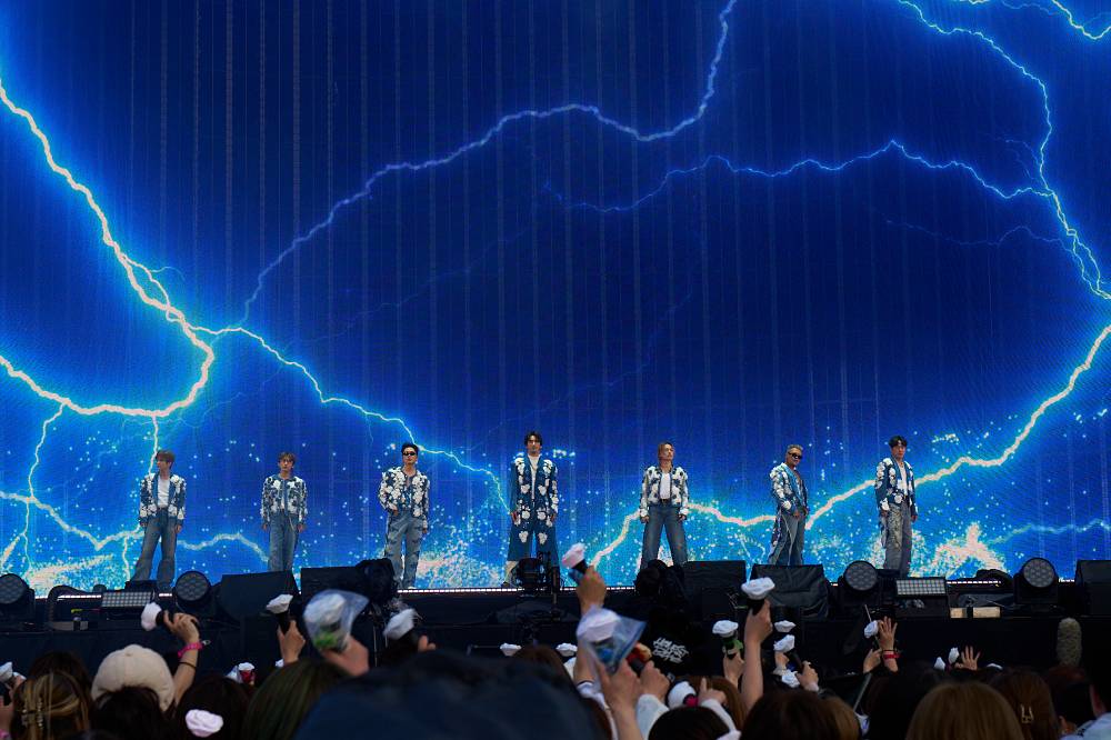 再びステージに7人がそろうと、スクリーンには降りしきる雨の映像が。後半戦の幕開けを飾ったのは、3月にリリースされたミニアルバム『ONE』のリード曲「Through The RAIN」だ。この日初披露となった楽曲を通して、7人は「仲間とともにこの先も歩み続ける」というメッセージをスタジアムに刻んでいく。