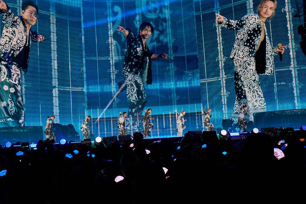 すっかり暗くなった会場に、ライトスティックの青い光が夜空のように広がる。星空の映像をバックに歌われたのは「次の時代へ」。今市とØMIの美しいハーモニーが、グループの明るい未来を想像させるようだった。