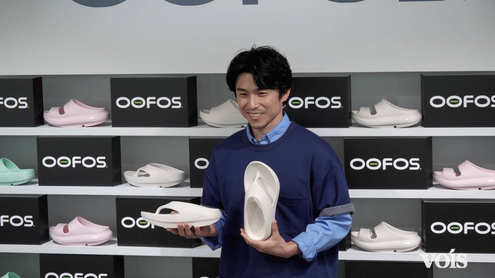 新モデルを履いた感想を中尾は「僕はそもそもウーフォスのヘビーユーザーなので近所を歩く時や、家の中でも履いています。本当に足への負担も感じにくくて、履くとやめやめられなくなっちゃうなと思います」