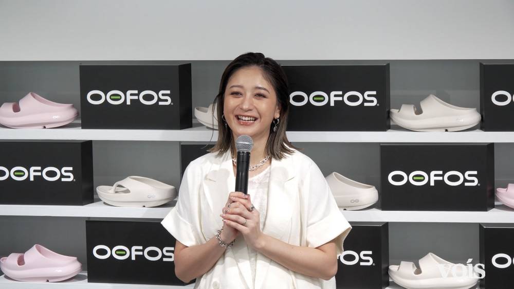 新モデルを履いた感想をみちょぱは「ウーフォスさんは、どれも履きやすいのですが、さらにすごくフィットしてる感じがすごくあります。地面というかソールのフィット感もなんですけど、足の甲の部分も自分の足の形にすごい合ってるなと思って。なんかシンデレラみたいになった気分です(笑)。履きやすさはダントツ1位ですね」