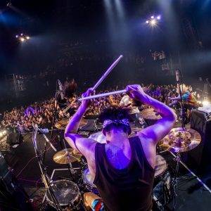 続くナンバーでは、今作の表題曲「Stop The War」を披露。彼らが戦争に対して訴えかけたい想いを、熱く投げかけていてとてもメッセージ性の強い曲にひき込まれていった。猪狩の刻むギターのリフが鳴り出すと、同時に熱狂の渦は止まることがない。ここではライブでお馴染みの「Download Me If You Can」がぶつけられ、熱風は更に強くなった。