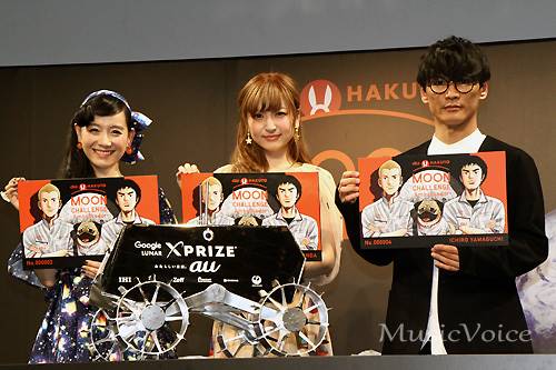 月面探査ロボットの発表会に出席した、左から神田沙也加、篠原ともえ、山口一郎(撮影・桂伸也)