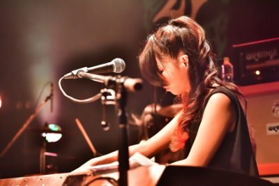 ここで趣を変え、アコースティックコーナーを届けた。mi-ya(Gt)はギターからピアノにチェンジ、Act.(Dr)もスティックからブラシに変え、既存曲をピアノバージョンで演奏。アコースティックはといってもアコースティックギターなどは誰も持たず。NATCHINも「アコースティックと言ってるけど、誰もアコースティックじゃないけどね」とツッコんだ。そのなかでオーディエンスも<ツッツチー ツッツチー♪>とドラムのハイハットのようなボイスパーカッションで演奏に参加した「つき」、180度曲の方向性を変えた「魂ノ歌」。<オーオオーオ♪>とコーラスをオーディエンスとシンガロング。途中Genoが「次、口笛でいくよ!」と投げかけ、口笛を奏でるが微妙な音色に会場からは笑声も。