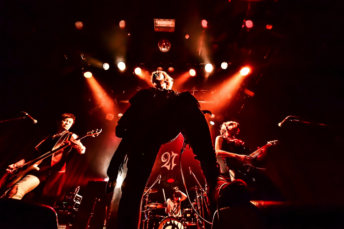 Genoが「声が枯れるくらい、出していきましょう!」と、可愛らしいネコの鳴き声から「ねこのうた」に突入。<トゥル トゥル トゥル トゥル♪>とAメロのコーラスが光るキャッチーでハードなナンバーは、タイトルの可愛さとは裏腹に力強さを感じさせた。Genoの鬼気迫る歌声が咆哮を上げた「MASK」、歌のシリアスさがメッセージを鮮明に打ち出した「たとえ話」、そして、体を動かさずにいられない「チョコレート三丁目」でさらに加速度を上げ、バンドのグルーヴが会場に渦巻いた。