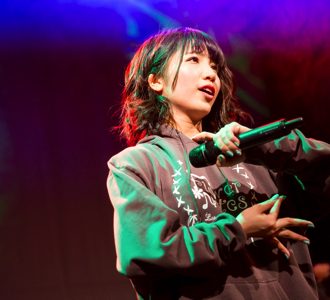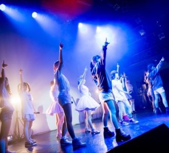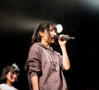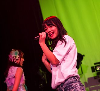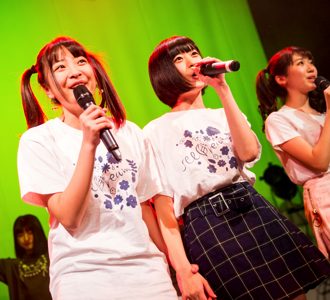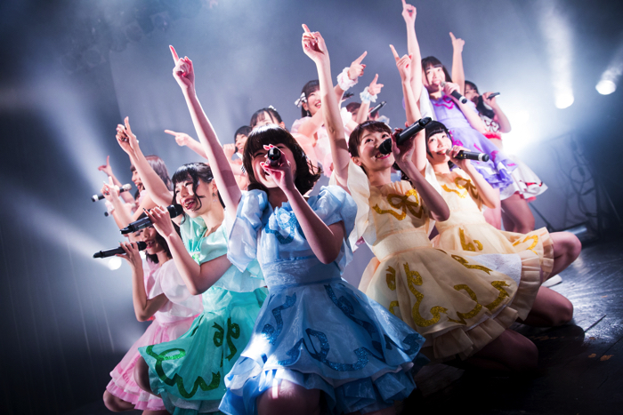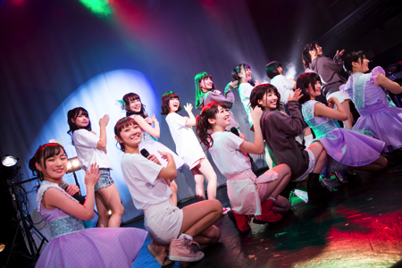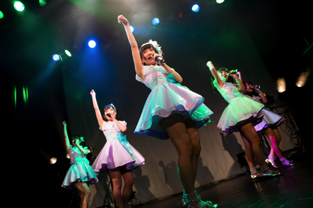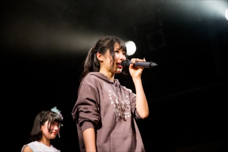 MCでは「サンビョウマエ」の映像を見た幸重が「いろいろあったけど5人でカワイイ服が着れて嬉しい」とデビューの喜びを語り、メンバーはデビューに向け毎日一緒にいることを話し、仲睦まじいグループ愛を感じさせた。続いて、坂下雅による朗読から「fancy drop love」を元気いっぱいに届ける。ドロップの入った缶を振るような振り付けがキュートなナンバーは、会場の高揚感を煽っていった。