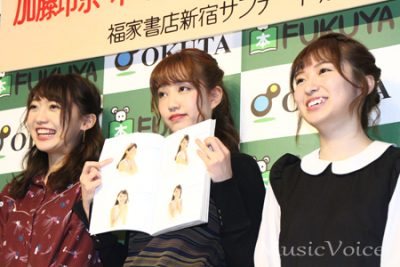「AKB48 れなっち総選挙選抜写真集 16colors」発売記念イベントに出席した、左から木崎ゆりあ、加藤玲奈、大島涼花(撮影・桂 伸也)