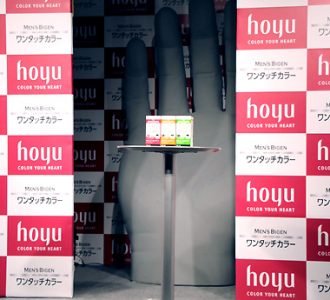 さらに、滝沢が出演するテレビCMが20日のオンエアに先駆けて、会場内のスクリーンで公開された。「片手のワンプッシュで染めることができる」ことを強調するために巨大な灰色の手のオブジェに滝沢が腰かけて商品を手に取り、「染めない理由って逆に何?」と訴えかける内容。