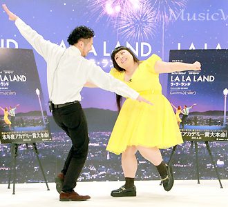 お笑い芸人の渡辺直美が9日、都内でおこなわれた米・映画『ラ・ラ・ランド』の公開直前PR発表会に参加した。この中で渡辺はイケメン振付師のANRIさんに指導され、劇中のダンスを再現。そのダンスを「才能に溢れている」と太鼓判を押された。気を良くした渡辺は「今ので恋に落ちたんじゃない?」と甘い言葉をかけ、ANRIさんを誘惑した。