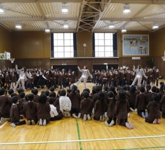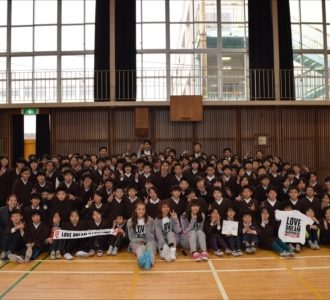 小学校の頃の夢や、今後の夢などを語る中、Ayaが「松原市から未来のE-girlsが生まれることです」と希望を述べると、生徒は目を輝かせて話に聞き入っていた。