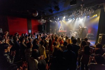軽快なポップサウンドが流れるフロア。午後6時の定刻を少し回る。同行者と談笑する人もいれば、ドリンクを注文してリラックスする人もいる。入り口付近には人があふれ、開演の瞬間を固唾をのんで見守る。ステージに並んだギターやベース、キーボード、ドラム。今はまだ音のない楽器もまた、感情を乗せて開放される瞬間を、今や遅しと待っているようだった。